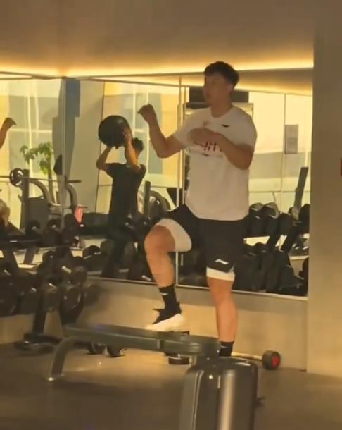 有媒体上传视频,画面中是广东队旧将张明池,他正在健身房做力量训练。我们看到张明池明显的变化,脸上有肉了,腿粗,肚子也圆起来了。张明池后来开始做训练,看得出来他应该是想减重。